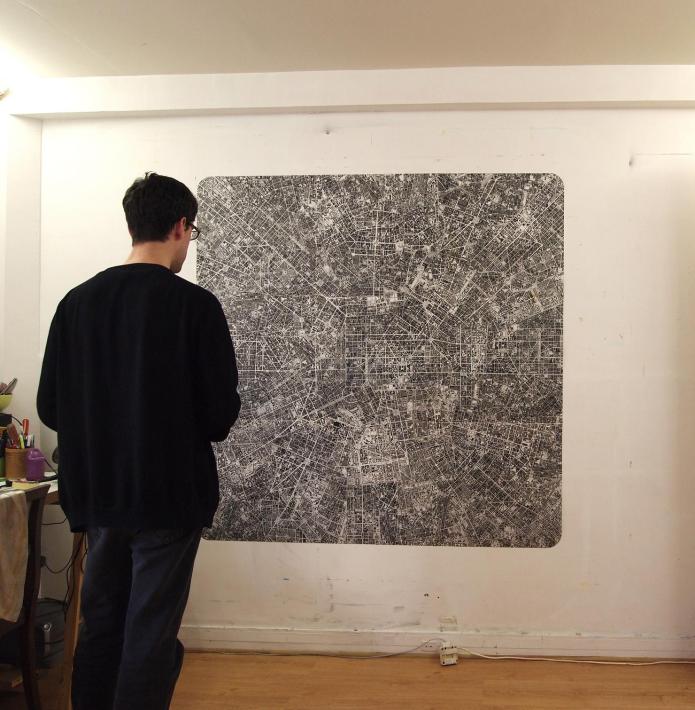 ← Les villes continues #16 MLN / The continuous cities #16 MLN / 2012 / 150x150cm / dessin à l’encre sur polyester – ink drawing on polyester